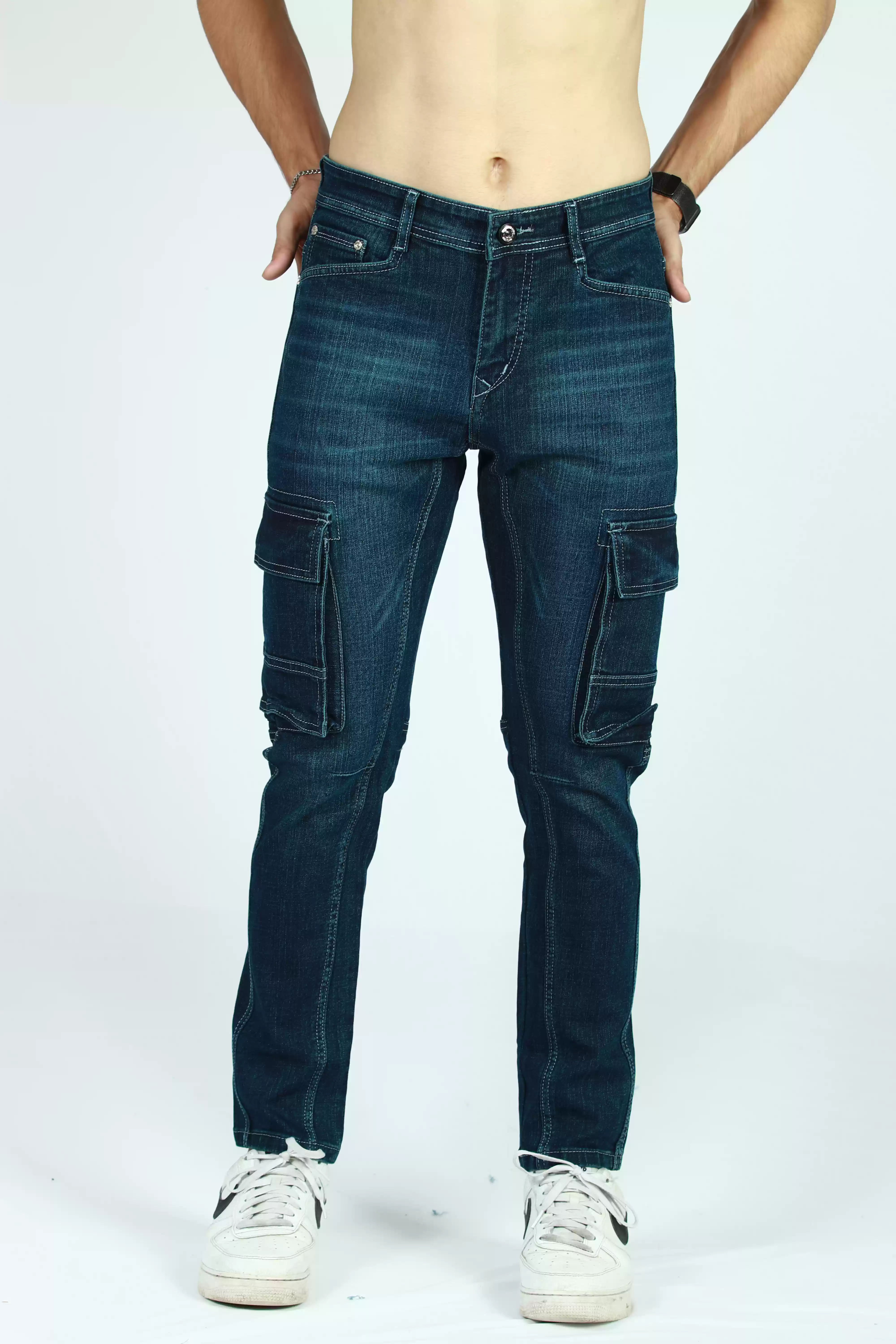 Elevate your casual look with our Dark Indigo Denim Cargo Jeans. Designed with a comfortable regular fit, these jeans feature spacious cargo pockets for a blend of style and practicality. Made from durable denim in a rich dark indigo hue, they’re perfect for a laid-back day or an on-the-go lifestyle. Ideal for anyone who values both fashion and function, these cargo jeans bring a modern edge to a classic design.
