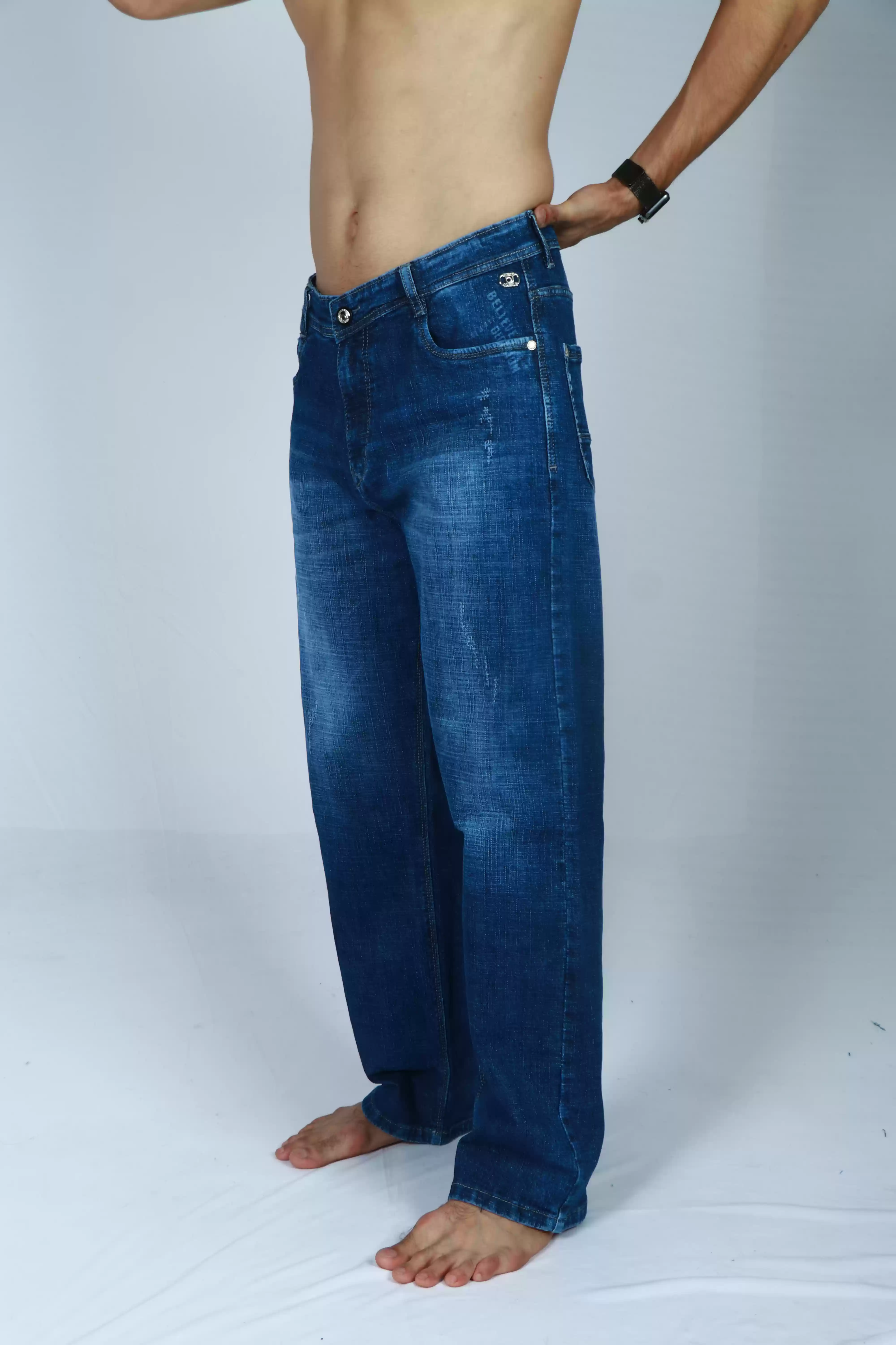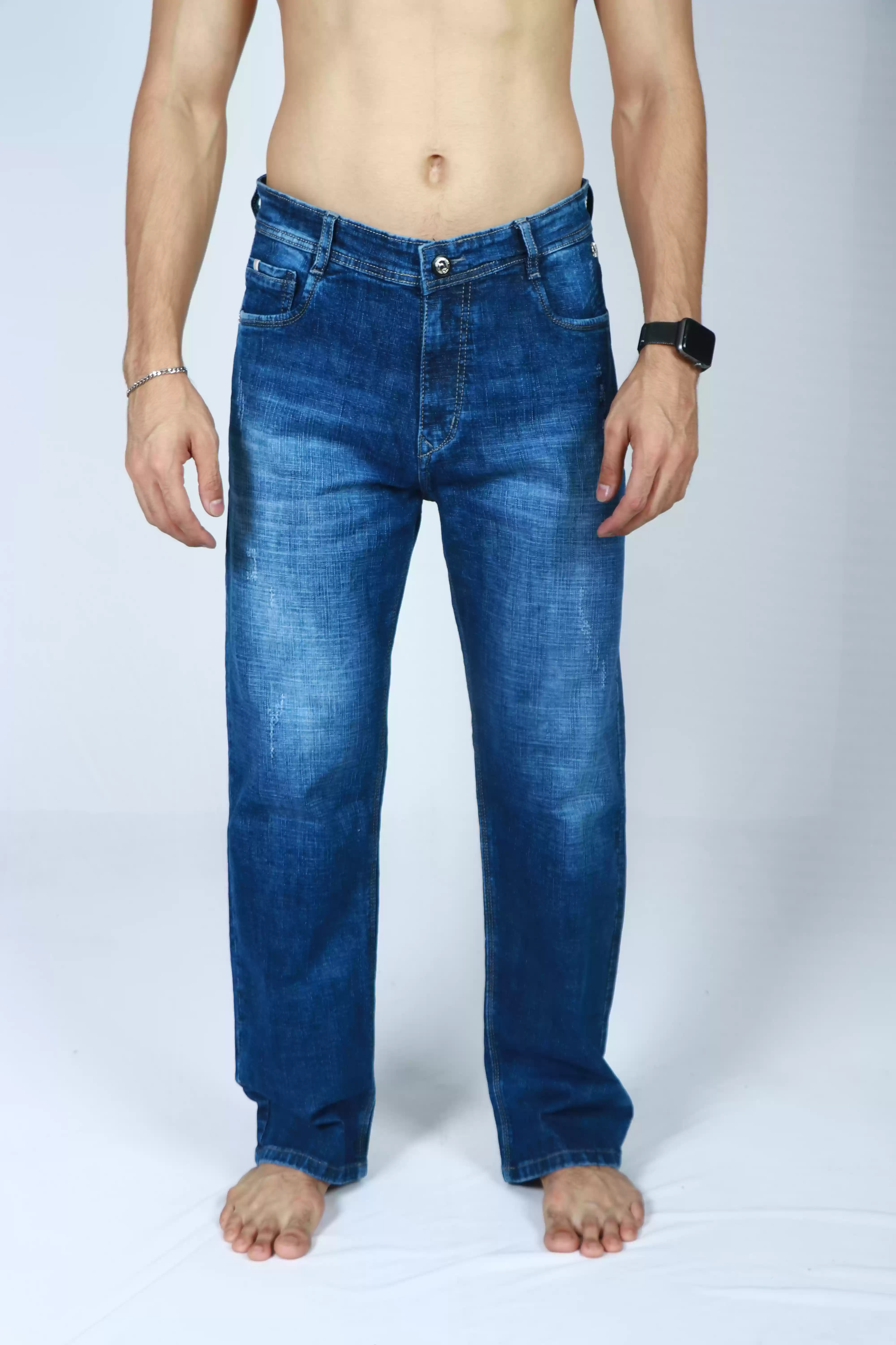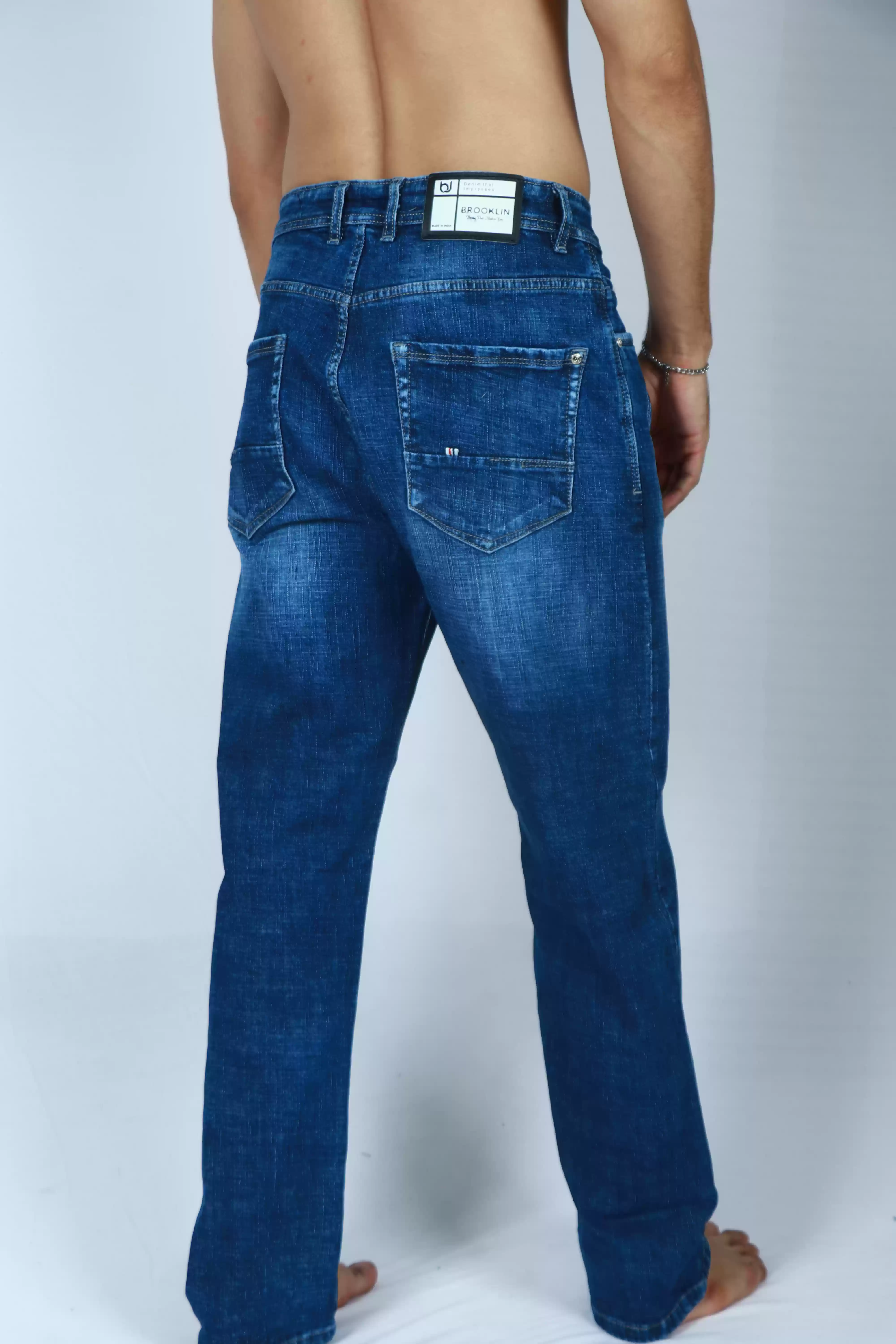 • Stylish medium blue denim wash