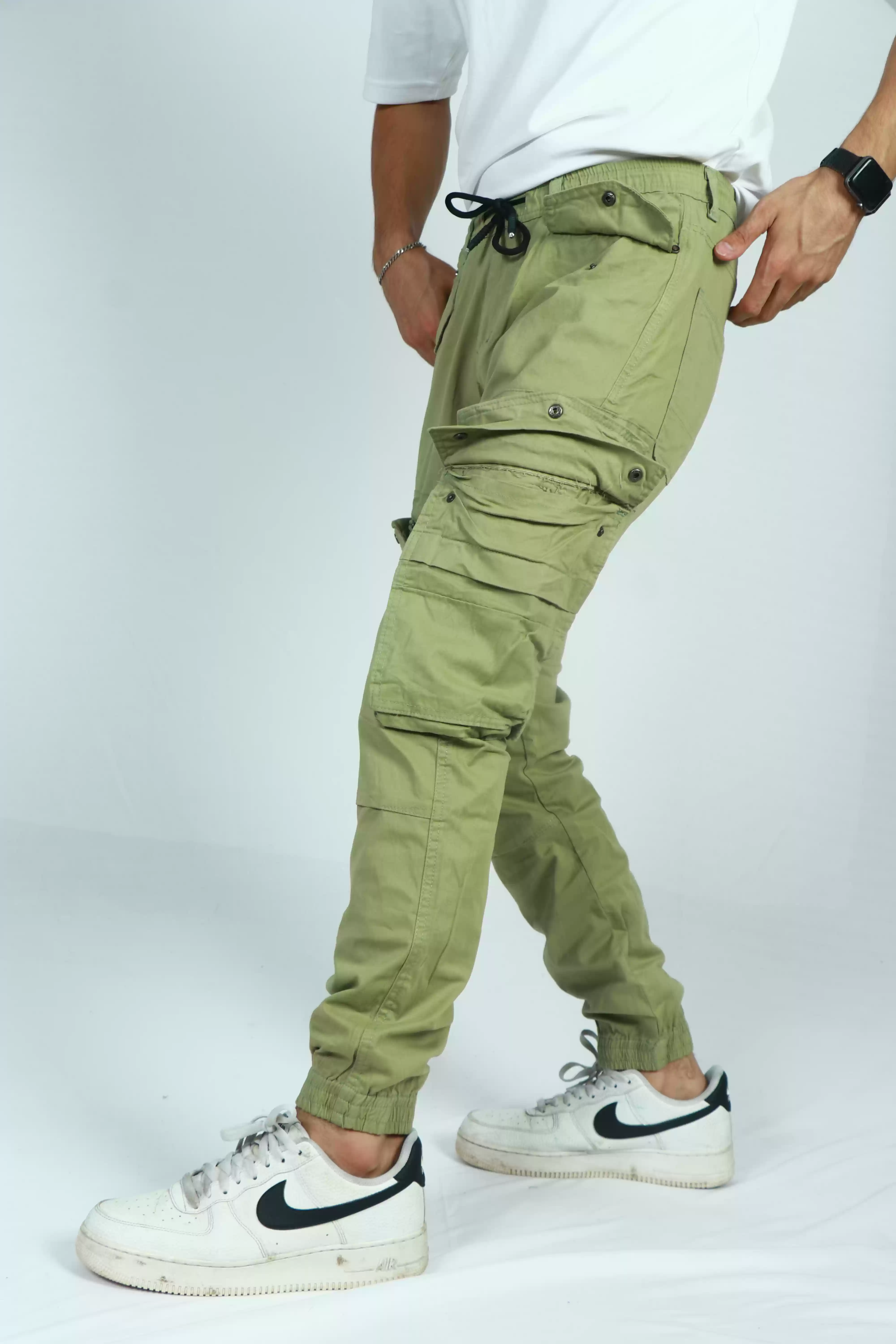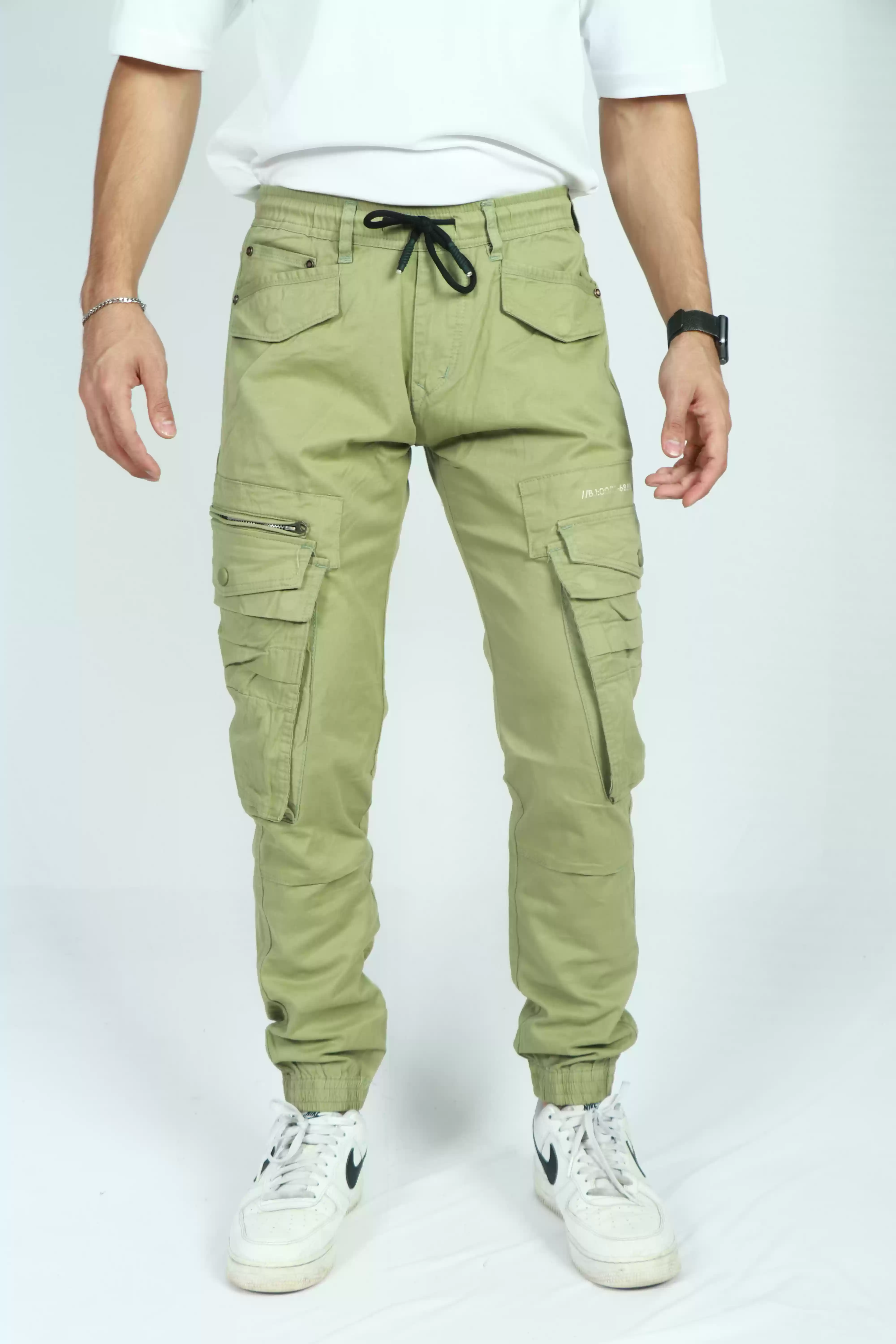 PALE OLIVE COTTON JOGGER CARGO JEANS